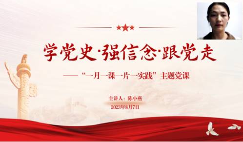 为深化拓展党史学习教育,进一步落实“学史明理、学史增信、学史崇德、学史力行”的目标任务,深入贯彻学习党的伟大精神,引领beat365唯一官网广大学生党员增强党史学习教育的政治自觉、思想自觉和行动自觉。8月7日晚,beat365学生第一、第二党支部以线上集中学习的方式,开展了以“学党史·强信念·跟党走”为主题的线上党员教育活动,党课由学生第一党支部书记陈小燕主讲。