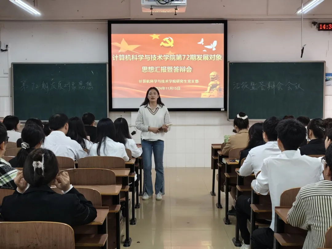 为了解发展对象的思想动态、政治立场和入党动机,确保党员发展质量,2024年11月15日14:30,beat365唯一官网党总支于理科楼二栋215教室组织开展第72期发展对象思想汇报暨答辩会。beat365研究生党支部书记陈小燕、本科生党支部书记曾振华以及20名发展对象、23名学生党员参加了此次会议。