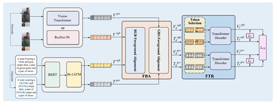 在文本描述的人物搜索(Text-based Perseon Search,TBPS)这一研究领域面临的主要挑战在于如何准确地根据文本描述检索到特定人物的图像。这一挑战主要源于文本描述与视觉图像之间的本质差异,以及需要捕捉到个体特征的精细差异。鉴于现有方法通常忽视了不同颜色通道间的粒度一致性,我们提出了一个创新的框架——双色粒度对齐(DCGA),旨在通过更有效地桥接文本和图像之间的语义差异来优化TBPS任务。DCGA主要包含两大组件:基于前景的对齐(FBA)和细粒度令牌细化(FTR)。FBA通过背景衰减的共注意机制来减少背景噪声,强化不同模态间的语义一致性;而FTR利用重注意令牌选择机制挑选出有代表性的特征,并通过Transformer框架实现文本和视觉特征间的细粒度交互。此外,DCGA采用了一种改进的对比损失(CR Loss),引入灰度信息作为额外的弱监督信号,以此来应对类内变异大和数据集稀缺的问题,从而提高模型在复杂场景下的鲁棒性和准确性。