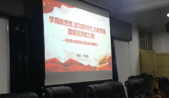 随后,党支部书记陈文辉以“学用新思想,建功新时代,为教育强国建设贡献力量”为题,从“建设教育强国战略的重要内涵”、“中国特色社会主义教育强国”、“培养什么人、怎样培养人、为谁培养人”,“强教必先强师”,“加强党对教育工作的全面领导”等方面,深刻阐述了党的二十大报告关于教育的核心要义和中共中央政治局就建设教育强国的第五次集体学习内容。并要求支部党员进一步统一思想、深化认识、提高政治站位、提升自身业务水平、在教学中融入思政教育、关心爱护困难学生,充分发挥党员的先锋模范作用。