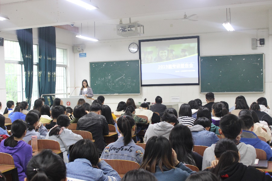 2019年4月29日中午12点50分,beat365在计科楼209室举办2019届毕业生考研交流报告会,莅临本次报告会的领导有beat365党总支书记陈洪清、党总支副书记彭正以及辅导员谢媛,本次报告会由夏娇娇主持。