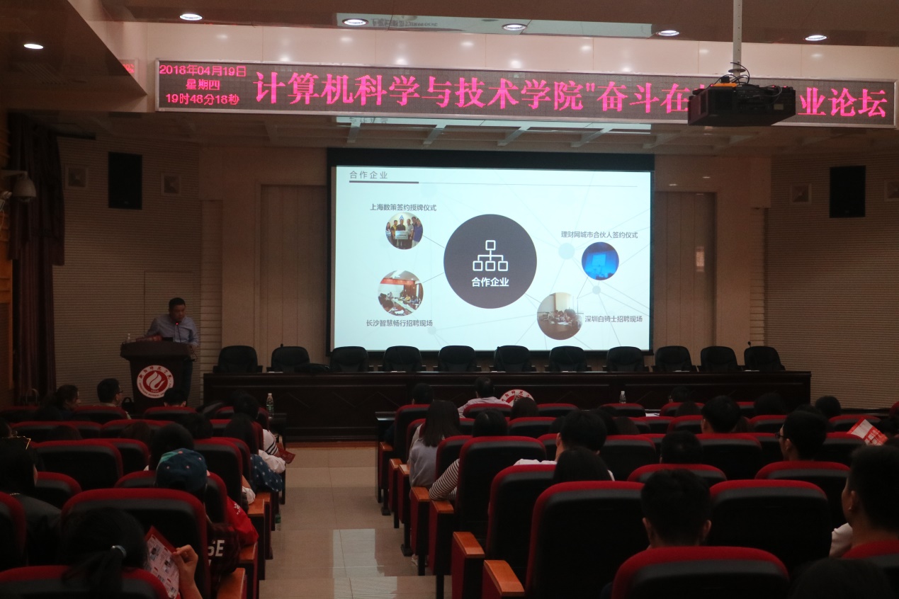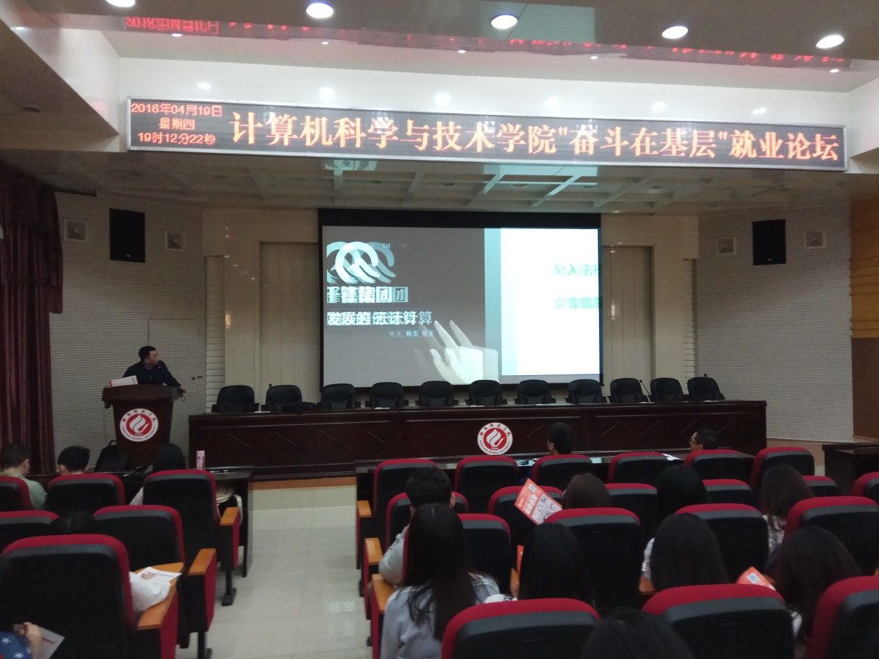 4月19日晚7点,beat365唯一官网“奋斗在基层”就业论坛在外语楼311召开,学院党总支书记陈洪清、院长李浪、副书记彭正、副院长郑光勇、辅导员徐峰、谢媛、匡娟丽,北京千峰教育集团大区总监肖总和云计算事业部杨总、湖南源辰科技公司刘总、北京尚学堂科技公司湖南区HR彭总和全院近200名学生参与了此次论坛,本次论坛由党总支书记陈洪清主持。