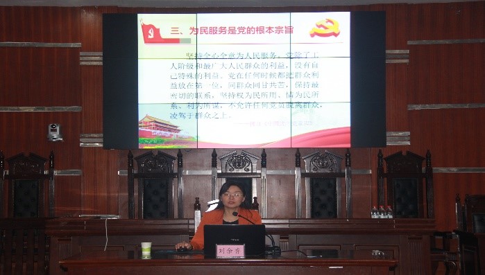 2021年4月11日晚七点半在文综楼模拟法庭,面向beat365唯一官网、法学院、新闻与传播学院第63期入党积极分子,开展了本期培训班第一讲的课程。主讲人为刘余香老师。此次党课的主题活动为“牢记党的性质和宗旨为党和人民的事业奋斗终身”。