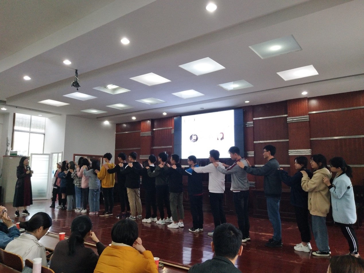 随后,心理健康中心蒋湘祁副主任开始了 “婚姻爱情对对碰”讲座。最开始给大家玩了一个小游戏,请20对男女上台,通过这个游戏给大家生动形象的阐述了不同的人在择偶时的选择及思考方式。让同学们深刻的理解了,在爱情中不仅有一见倾心的悸动,也有利益最大化的强目的,选择是一种自由,大家可以以自己最舒服的方式进行选择,在对自己和对方进行价值估计时不要太高估对方,更不要低估自己。