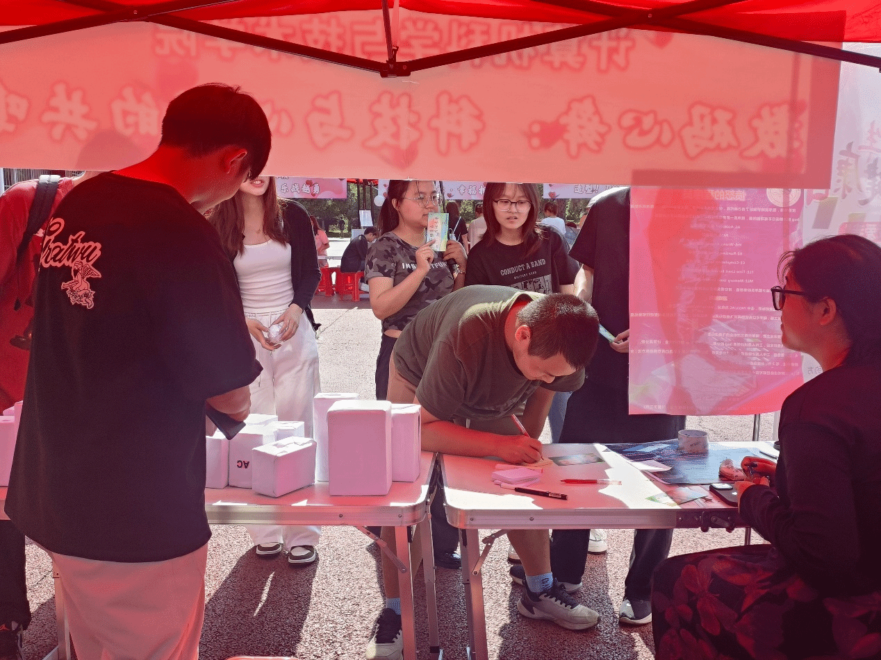 5月25日上午9点整,“压砺青春、力动未来”快乐心理游园会在红旗广场正式拉开了帷幕。游园会现场设置了多个精彩纷呈的活动区域。beat365“数码心舞:科技与心理的共鸣”展区,通过丰富多彩的心理活动,如调节情绪方法的分享、互动游戏—“愤怒的程序员”、心理咨询等,为参与者提供了一个轻松愉快的氛围,引导同学们关爱自己的心理健康,促进心理成长与交流,营造了积极向上的校园氛围。