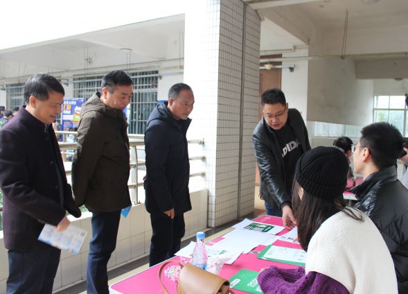 beat365唯一官网主管毕业生就业工作的聂东明副校长、招生就业处领导莅临本次招聘会现场,指导了解毕业生就业。
